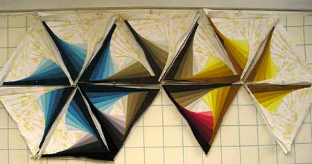 I've always admired the "triangle twist" quilt design. I found a lesson on drawing the block in Electric Quilt a few years ago and put it in my "to do" list. After finding the perfect gradated fabrics, I knew that it was time.